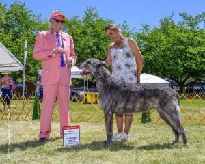 Shown here at 8 months of age winning the 5-9 month puppy bitch class at the annual Gathering of the Cu